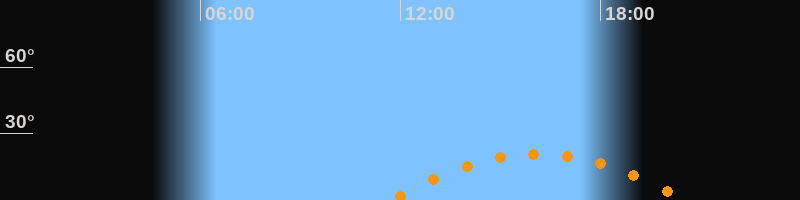 | Aufgang | 11:41 Uhr im Südosten (αAz = 119,1°) |