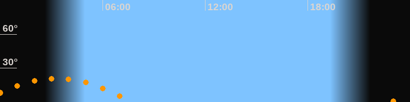 | Aufgang | 22:47 Uhr im Südosten (αAz = 119,1°) |
