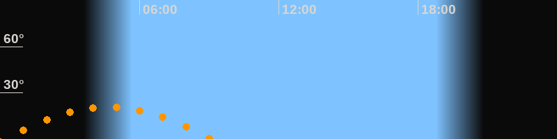 | Untergang | 09:06 Uhr im Südwesten (αAz = 240,9°) |