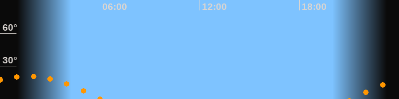 | Untergang | 06:05 Uhr im Südwesten (αAz = 240,9°) |