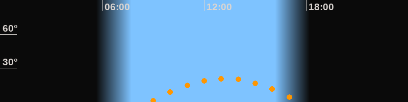 | Höchster Stand (Kulmination) | 13:11 Uhr (h = 20,9°) |