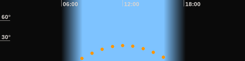 | Höchster Stand (Kulmination) | 12:05 Uhr (h = 23,1°) |