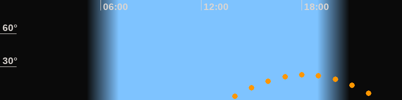 | Höchster Stand (Kulmination) | 18:09 Uhr (h = 23,1°) |