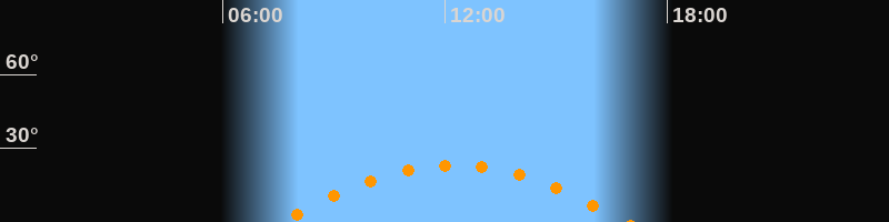 | Höchster Stand (Kulmination) | 12:14 Uhr (h = 23,1°) |