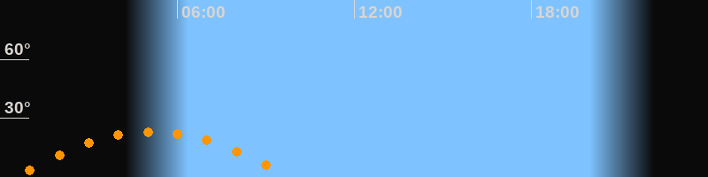 | Untergang | 09:48 Uhr im Südwesten (αAz = 244,6°) |