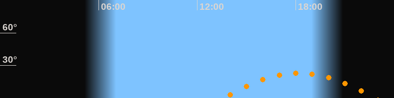| Höchster Stand (Kulmination) | 18:12 Uhr (h = 23,1°) |