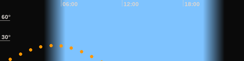 | Höchster Stand (Kulmination) | 05:15 Uhr (h = 23,1°) |