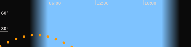 | Untergang | 09:07 Uhr im Südwesten (αAz = 244,6°) |