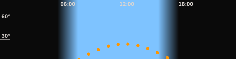 | Höchster Stand (Kulmination) | 12:38 Uhr (h = 23,1°) |