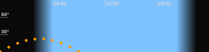 | Untergang | 09:12 Uhr im Südwesten (αAz = 244,6°) |