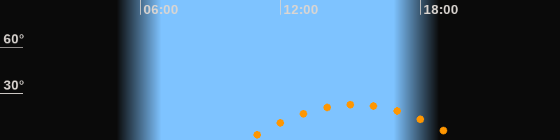 | Höchster Stand (Kulmination) | 15:09 Uhr (h = 23,1°) |