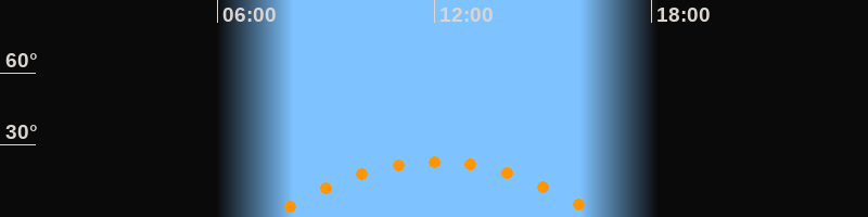 | Höchster Stand (Kulmination) | 12:02 Uhr (h = 23,1°) |