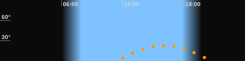 | Höchster Stand (Kulmination) | 16:03 Uhr (h = 23,1°) |