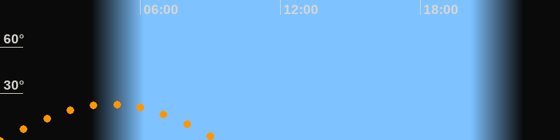 | Untergang | 09:23 Uhr im Südwesten (αAz = 244,6°) |