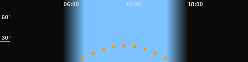 | Höchster Stand (Kulmination) | 12:03 Uhr (h = 23,8°) |
