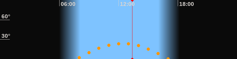 | Höchster Stand (Kulmination) | 12:24 Uhr (h = 23,8°) |