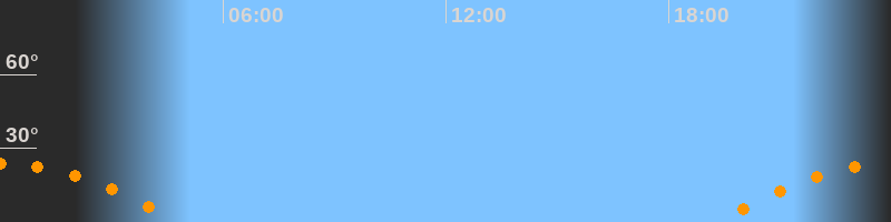 | Untergang | 04:48 Uhr im Südwesten (αAz = 245,8°) |