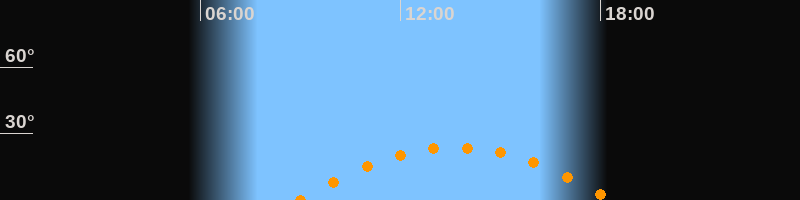 | Höchster Stand (Kulmination) | 13:39 Uhr (h = 23,8°) |