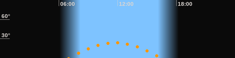 | Höchster Stand (Kulmination) | 11:45 Uhr (h = 23,8°) |