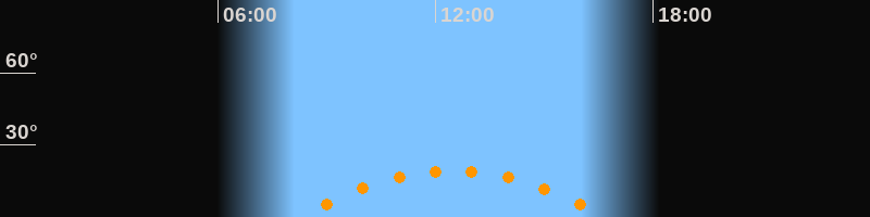 | Höchster Stand (Kulmination) | 12:29 Uhr (h = 19,3°) |