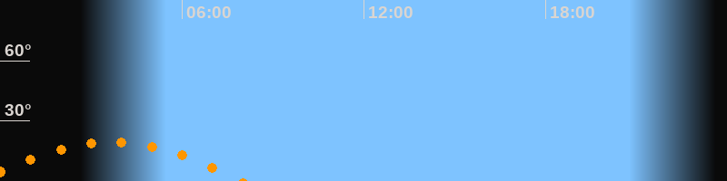 | Aufgang | 23:18 Uhr im Südosten (αAz = 121,9°) |