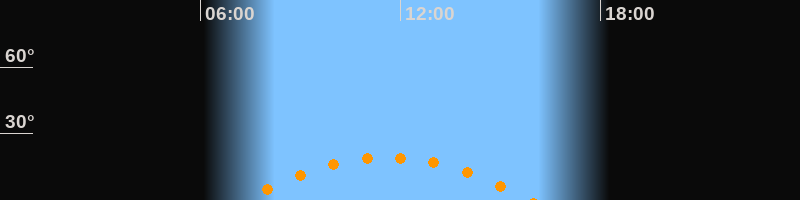 | Höchster Stand (Kulmination) | 11:36 Uhr (h = 19,3°) |