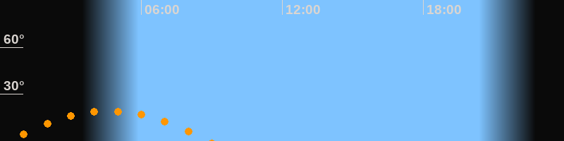 | Untergang | 08:55 Uhr im Südwesten (αAz = 238,1°) |
