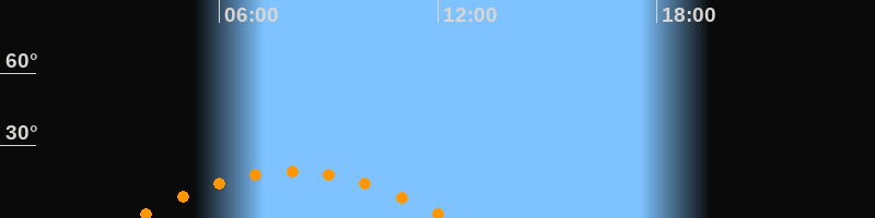 | Höchster Stand (Kulmination) | 07:58 Uhr (h = 19,3°) |
