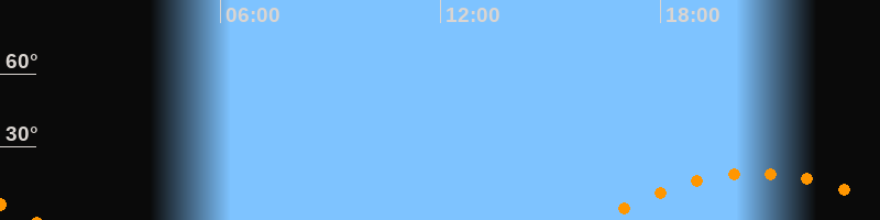 | Aufgang | 16:18 Uhr im Südosten (αAz = 121,9°) |