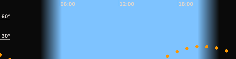 | Aufgang | 16:20 Uhr im Südosten (αAz = 121,9°) |