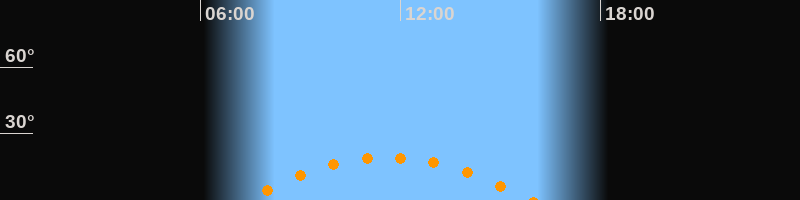 | Höchster Stand (Kulmination) | 11:38 Uhr (h = 19,3°) |