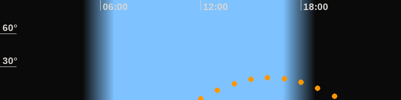 | Höchster Stand (Kulmination) | 16:08 Uhr (h = 20,3°) |