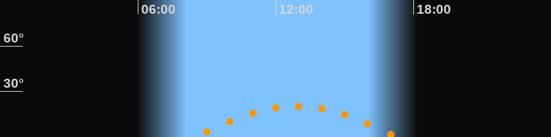 | Höchster Stand (Kulmination) | 12:53 Uhr (h = 20,3°) |