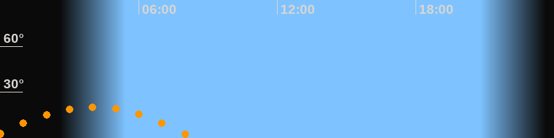 | Untergang | 08:25 Uhr im Südwesten (αAz = 240°) |