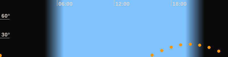 | Aufgang | 15:33 Uhr im Südosten (αAz = 120°) |