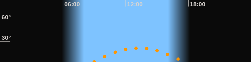 | Höchster Stand (Kulmination) | 13:15 Uhr (h = 20,3°) |