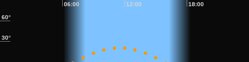 | Höchster Stand (Kulmination) | 11:30 Uhr (h = 20,3°) |