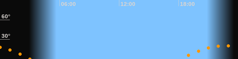 | Untergang | 03:04 Uhr im Südwesten (αAz = 240°) |