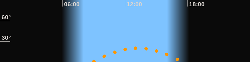 | Höchster Stand (Kulmination) | 13:11 Uhr (h = 20,3°) |