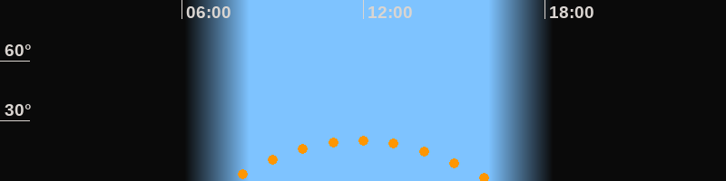 | Höchster Stand (Kulmination) | 11:53 Uhr (h = 20,3°) |