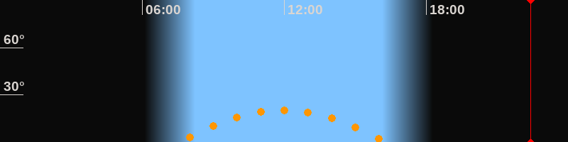 | Höchster Stand (Kulmination) | 11:55 Uhr (h = 20,3°) |