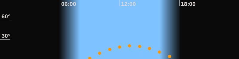 | Höchster Stand (Kulmination) | 13:09 Uhr (h = 20,3°) |