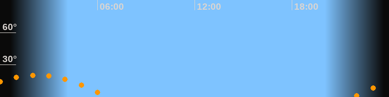 | Untergang | 06:39 Uhr im Südwesten (αAz = 240°) |