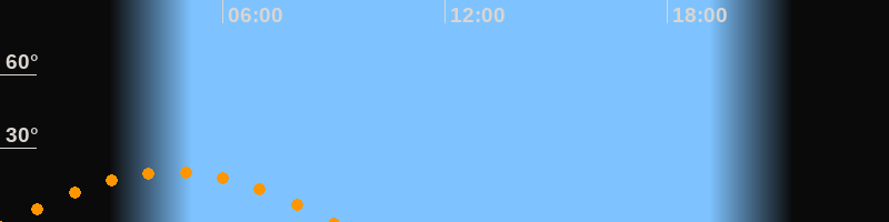 | Untergang | 09:01 Uhr im Südwesten (αAz = 240°) |