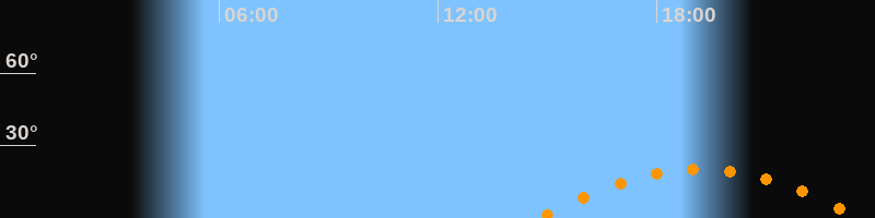 | Aufgang | 14:46 Uhr im Südosten (αAz = 120°) |
