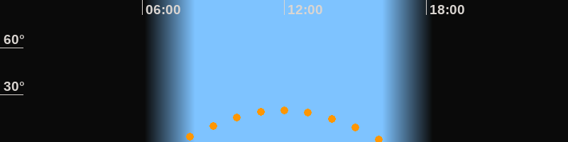 | Höchster Stand (Kulmination) | 11:54 Uhr (h = 20,3°) |