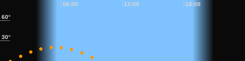 | Untergang | 09:46 Uhr im Südwesten (αAz = 240°) |
