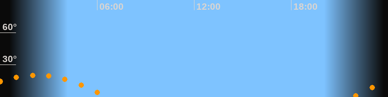 | Untergang | 06:37 Uhr im Südwesten (αAz = 240°) |