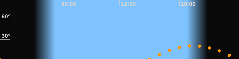 | Aufgang | 15:00 Uhr im Südosten (αAz = 120°) |