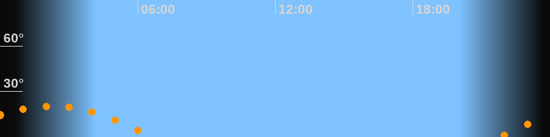 | Untergang | 06:38 Uhr im Südwesten (αAz = 240°) |